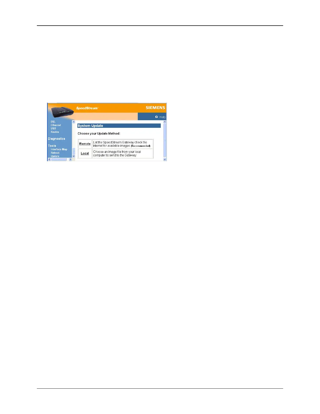 1. Select Tools>Update from the left navigation pane of the Web interface. This displays “System