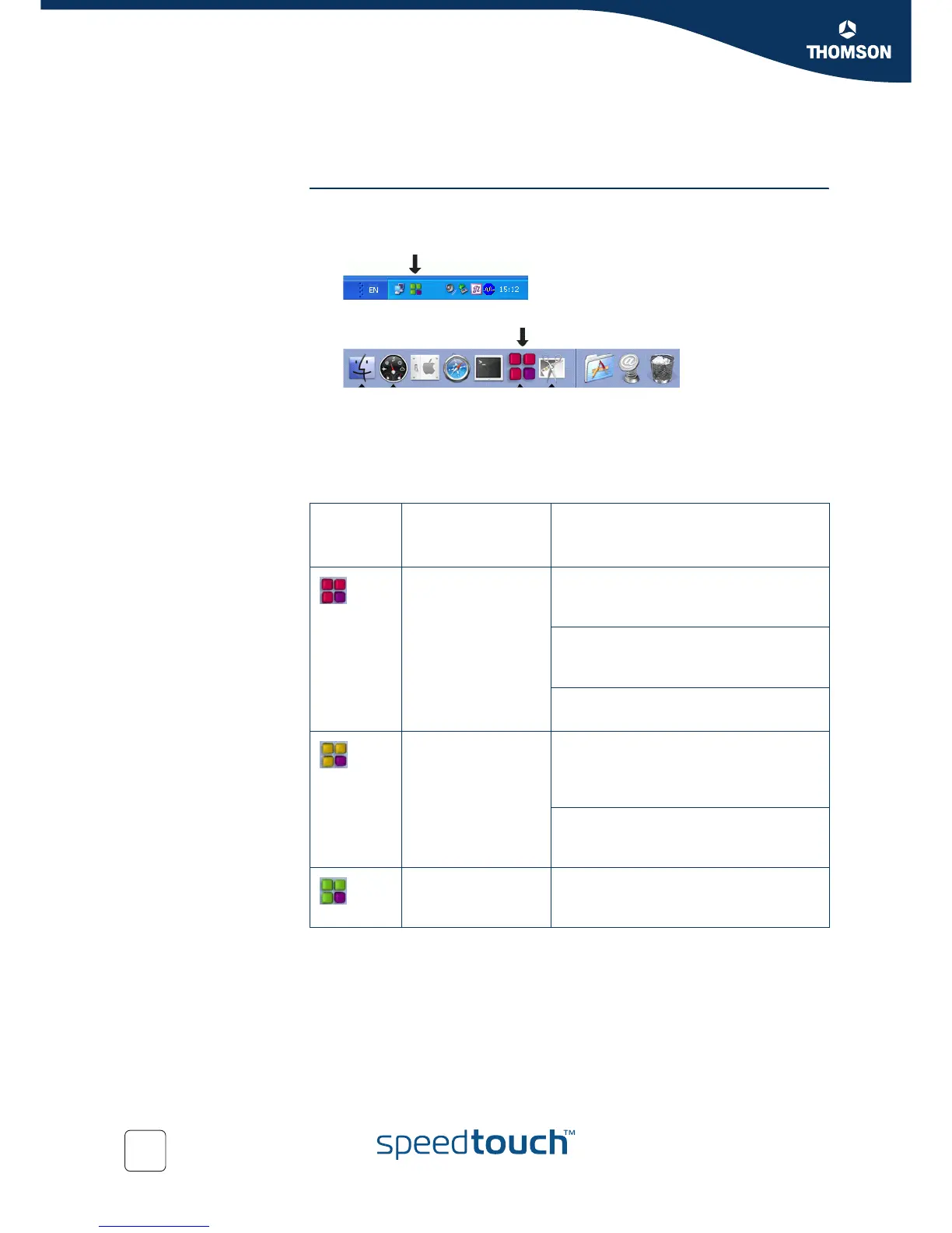 The SpeedTouch™ Diagnostics icon is coloured, depending on the status of the