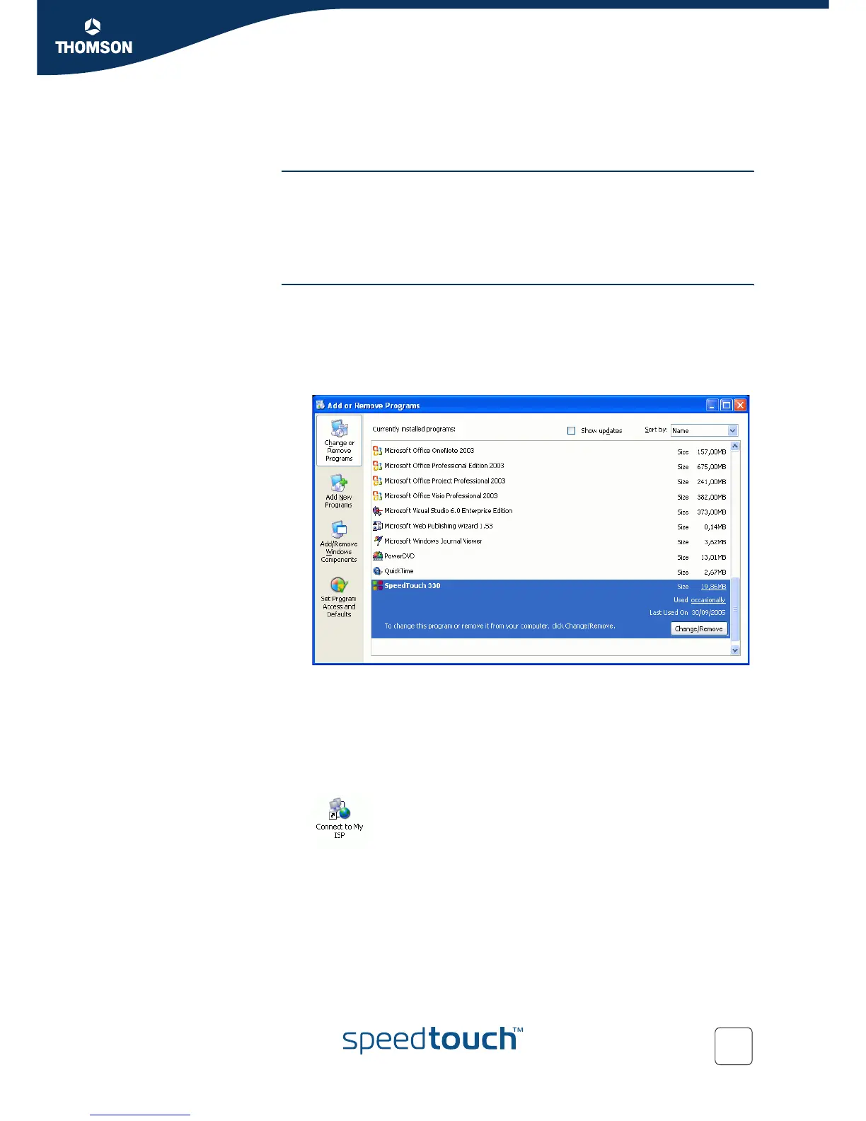 5 Delete remaining SpeedTouch™ shortcuts, if any, from your desktop or Quick