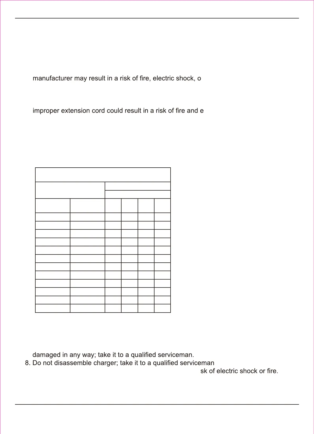 6. Do not operate this charger with a damaged cord or plug. Replace the cord or plug