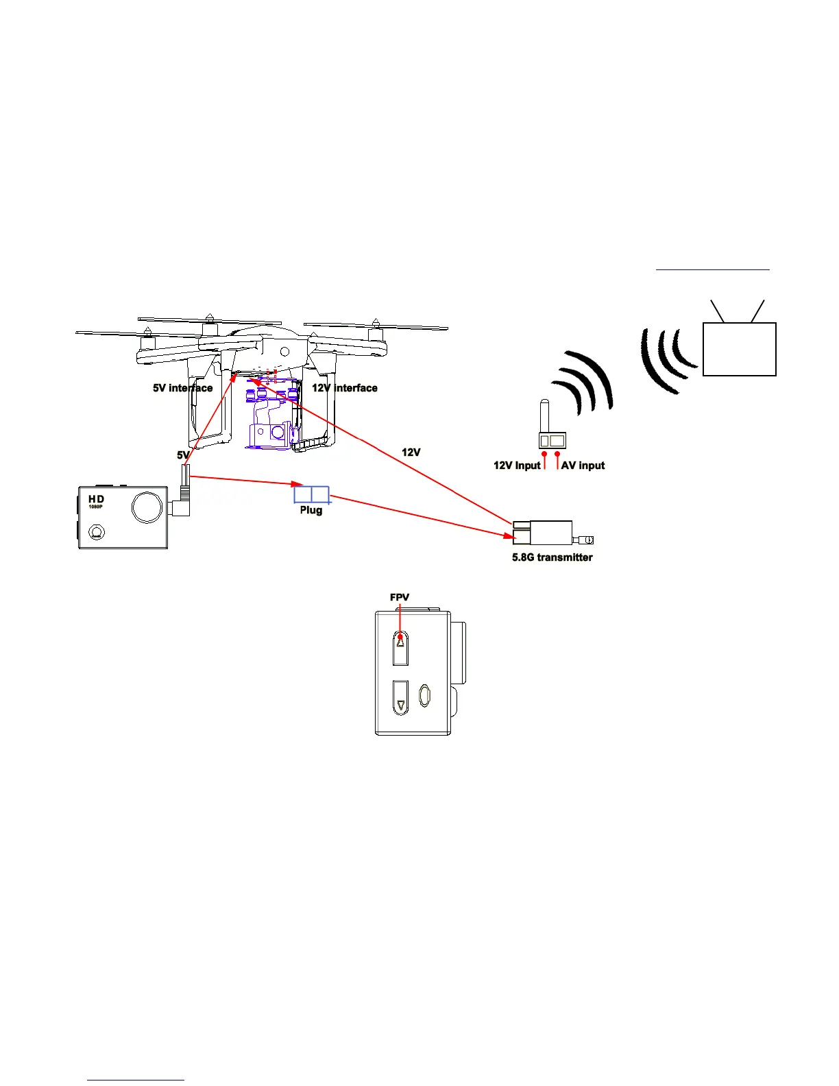 If press 3 second FPV button,the camera will change to FPV mode,5.8G transmitter;If press 3second FPV button again,the