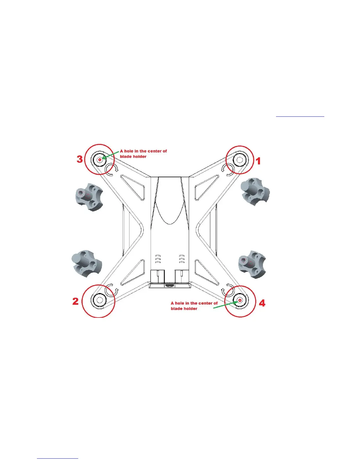 3.How to find out the clockwise rotation and contra rotation: There is a small hole in the center of blade holder of NO. 3/4. Without