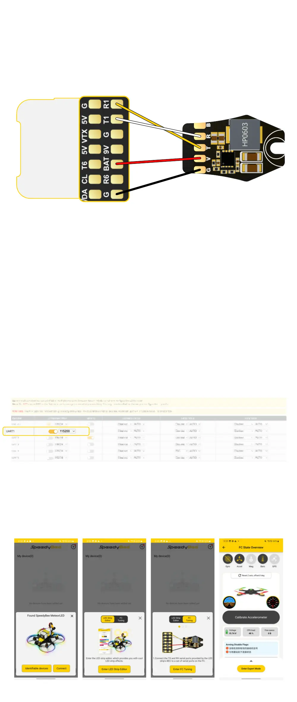 ③ Find a set of unused UART on the ight controller. Solder the yellow