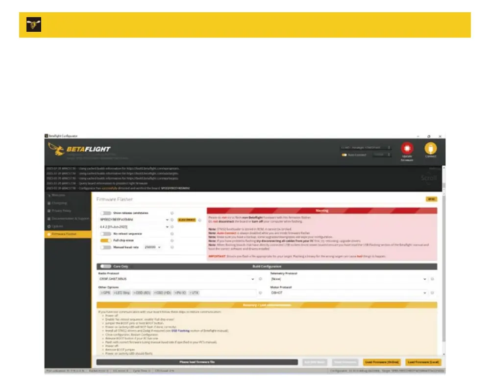 example, go to the ‘Firmware Flashing’ page, choose the target ‘SPEEDYBEEF405MINI’ and flash.