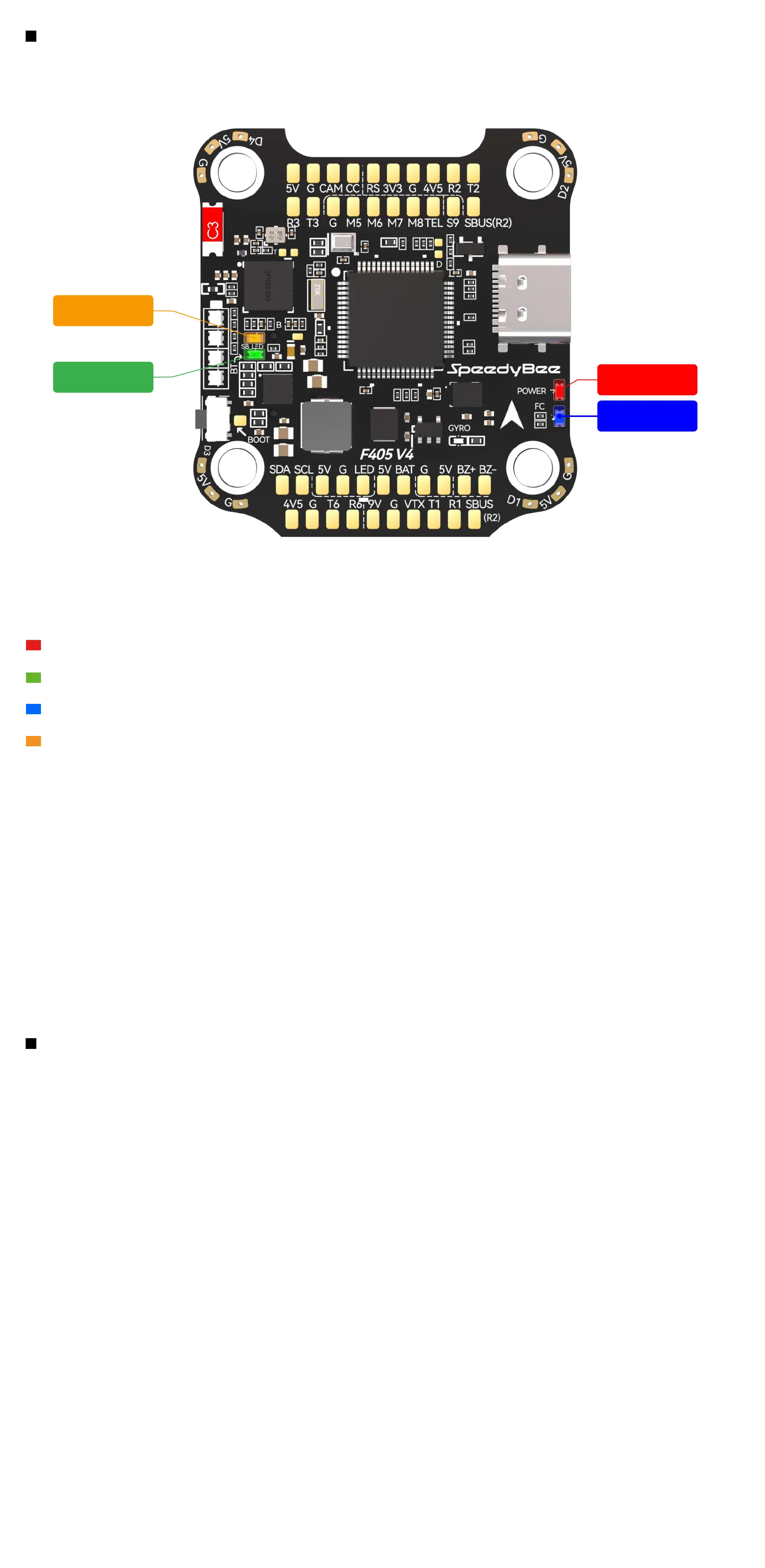 BLUE LED - Flight controller status light which is controlled by the ight controller rmware.
