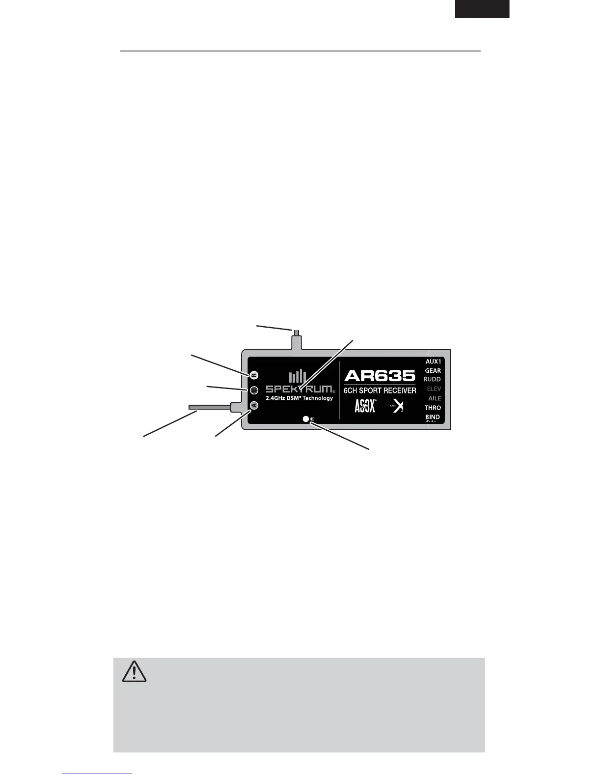 NOTICE: The AR635 receiver is not compatible with the DX6 park fl yer