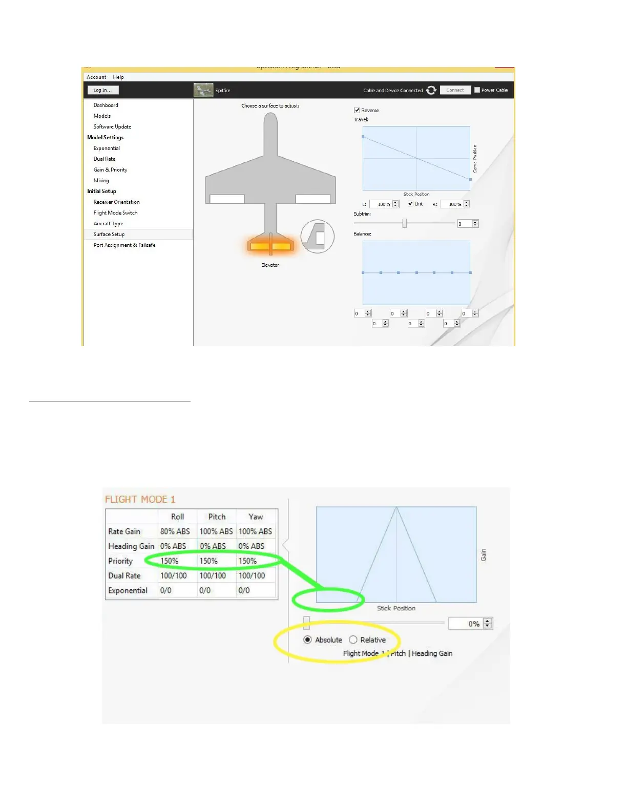 Spektrum AS3X - Setting Rate Gain and Priority; Gain and Priority Settings Example