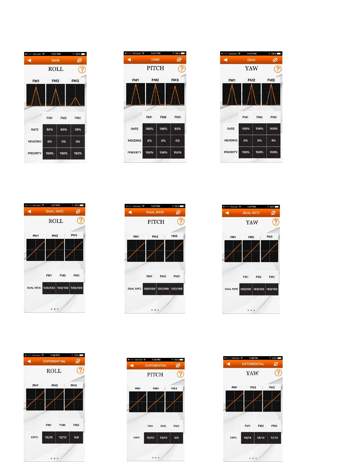 Spektrum AS3X - AS3 X Configuration Examples; Gain Settings Examples; Dual Rate Settings Examples; Exponential Settings Examples