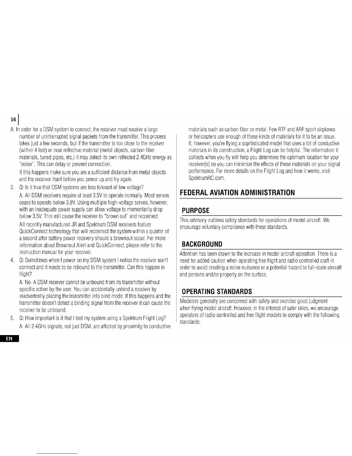 Spektrum DX 4e - Federal Aviation Administration Guidelines; FAA Purpose; FAA Background; Operating Standards