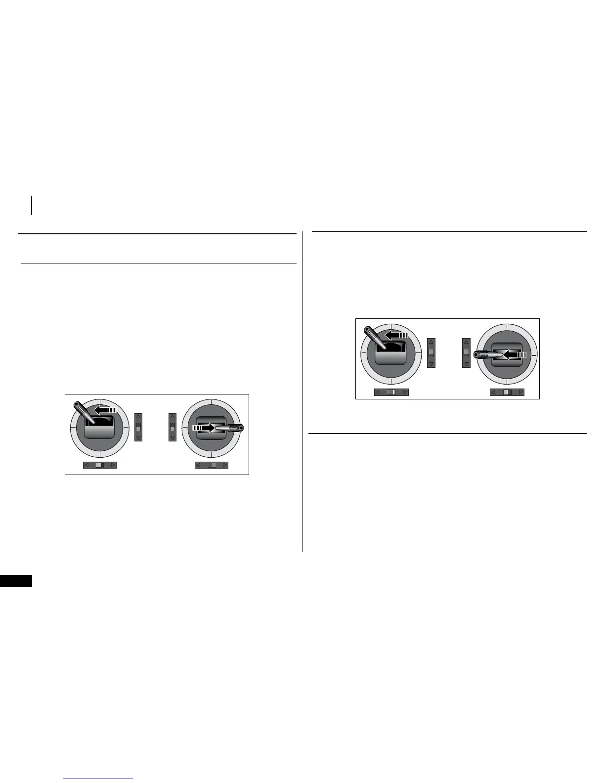 während Sie die zwei Steuerknüpple wie abgebildet halten und schalten dabei