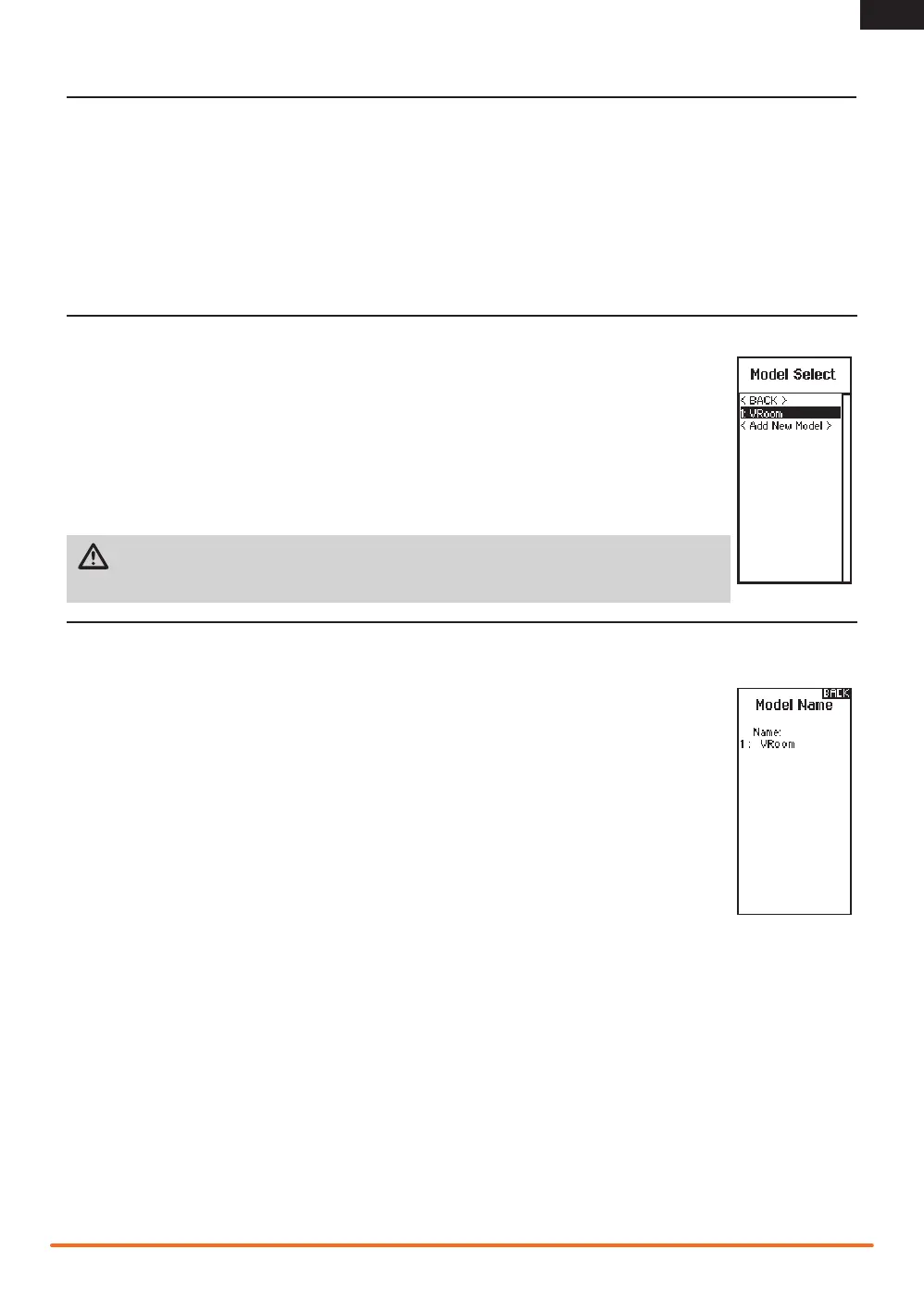 CAUTION: NEVER change the model in Model Select while operating a model. Changing the model