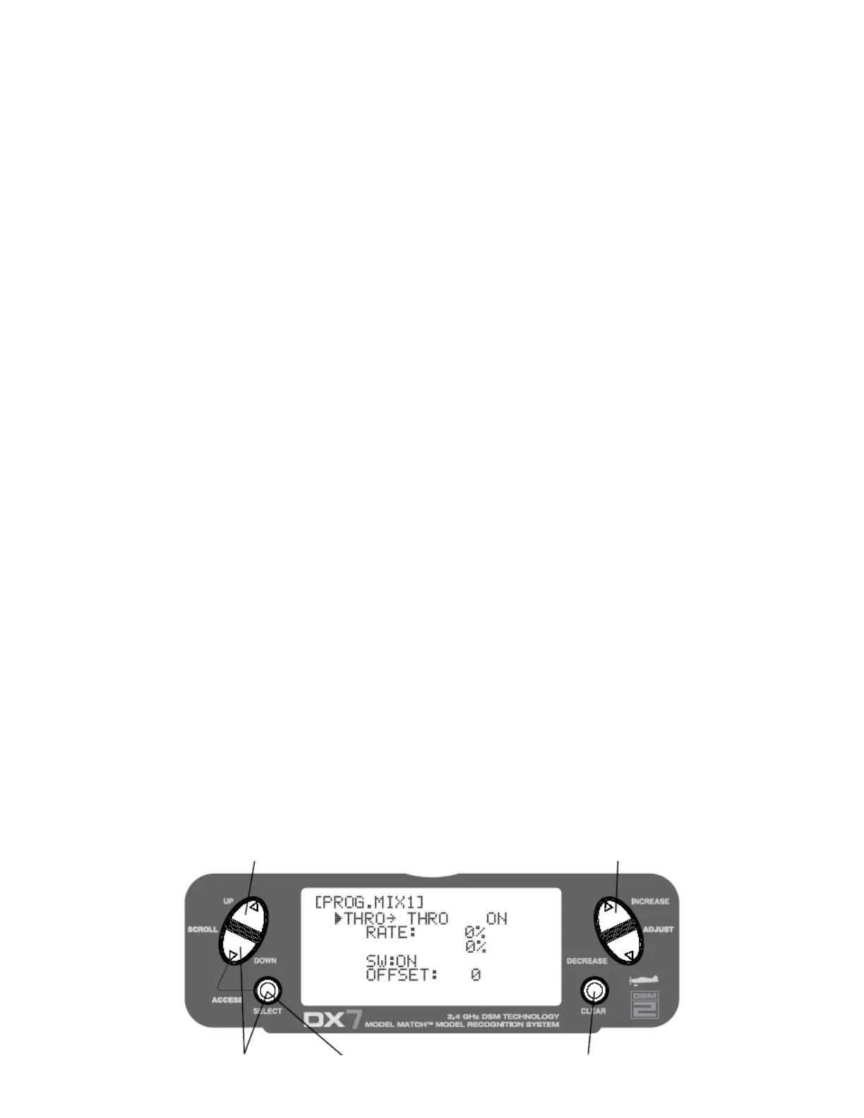 The DX7 offers six (6) programmable mixes that allow stick or switch inputs to control the output of two or