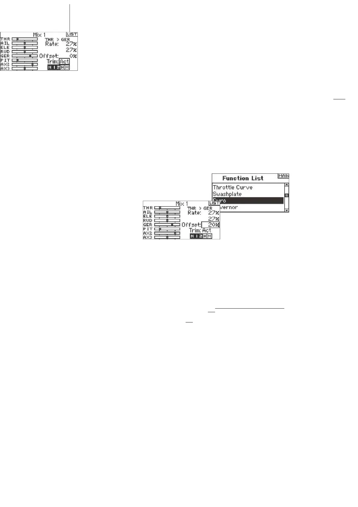 roller to access the switch function. Rotate the roller to access the desired gyro control switch.