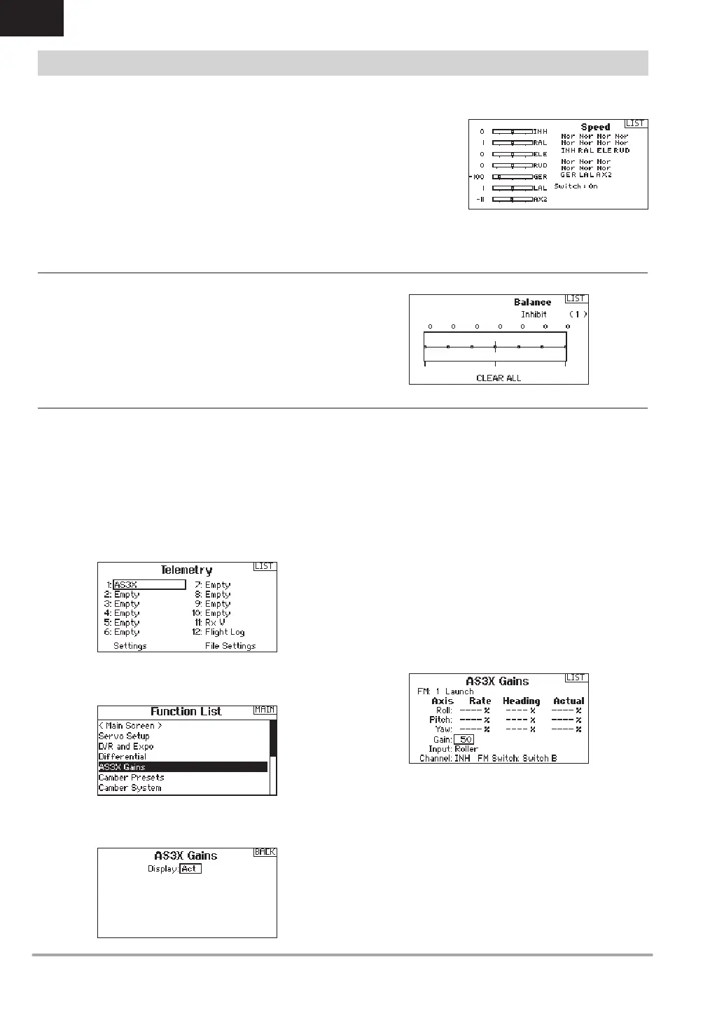 2. In the Function List Access the AS3X Gain menu. If an AS3X