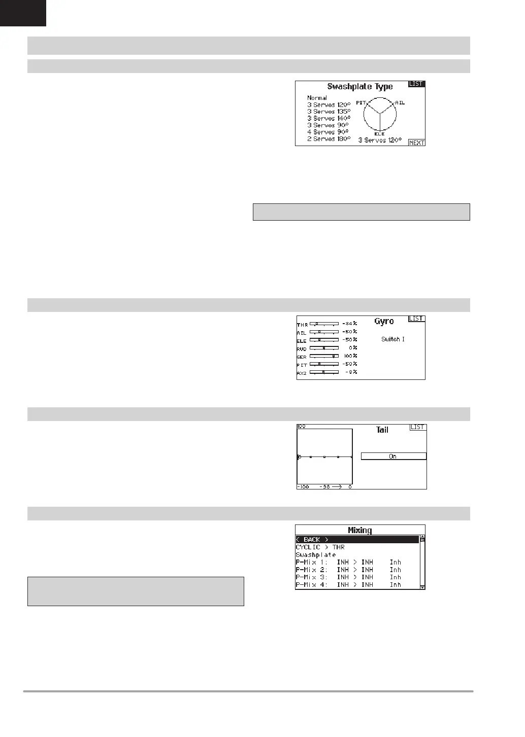 Before making adjustments to the Swashplate mix, make sure the