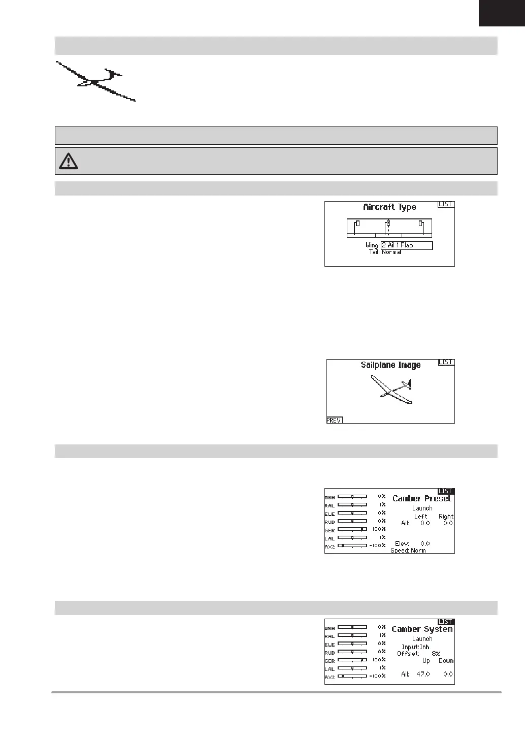 selected in Sailplane Type. The Camber System allows in-fl ight