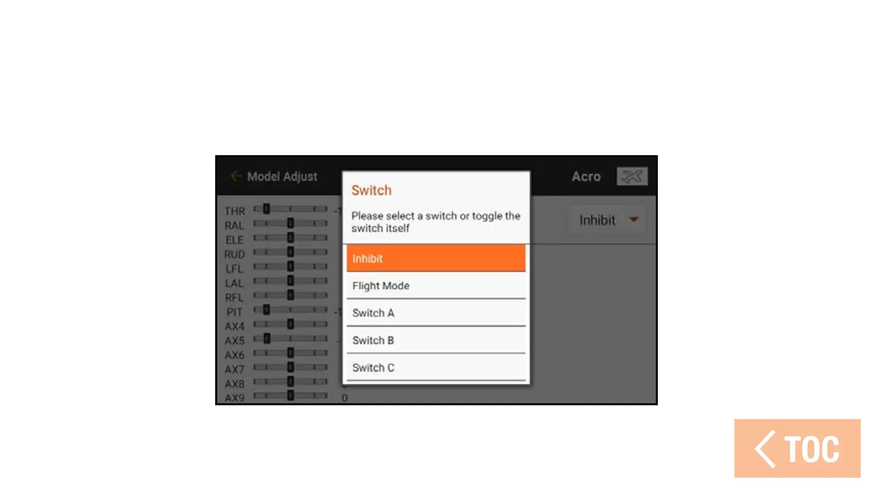 2. Select the desired switch from the popup menu. A quicker alternative to