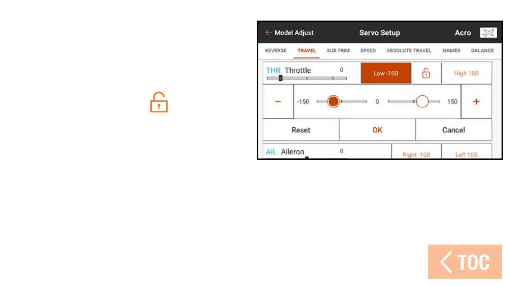 To adjust travel values: