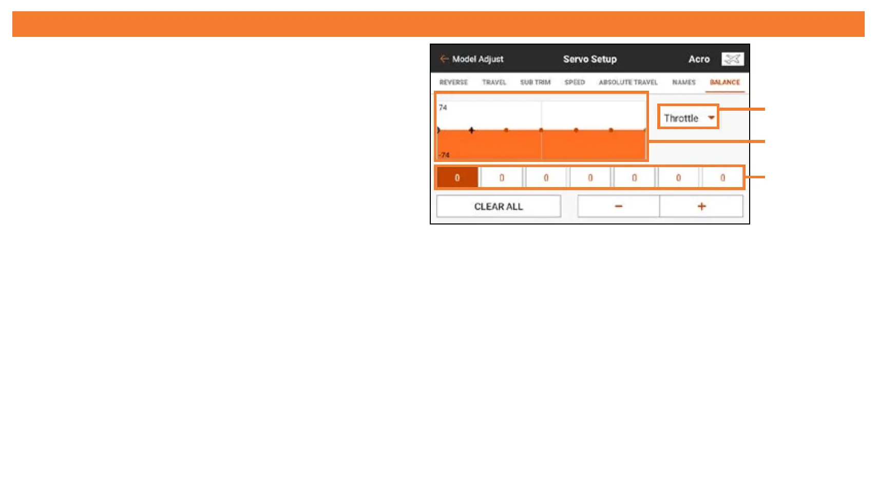 Balance is not intended to be used to set travel, trim and reversing changes, but to