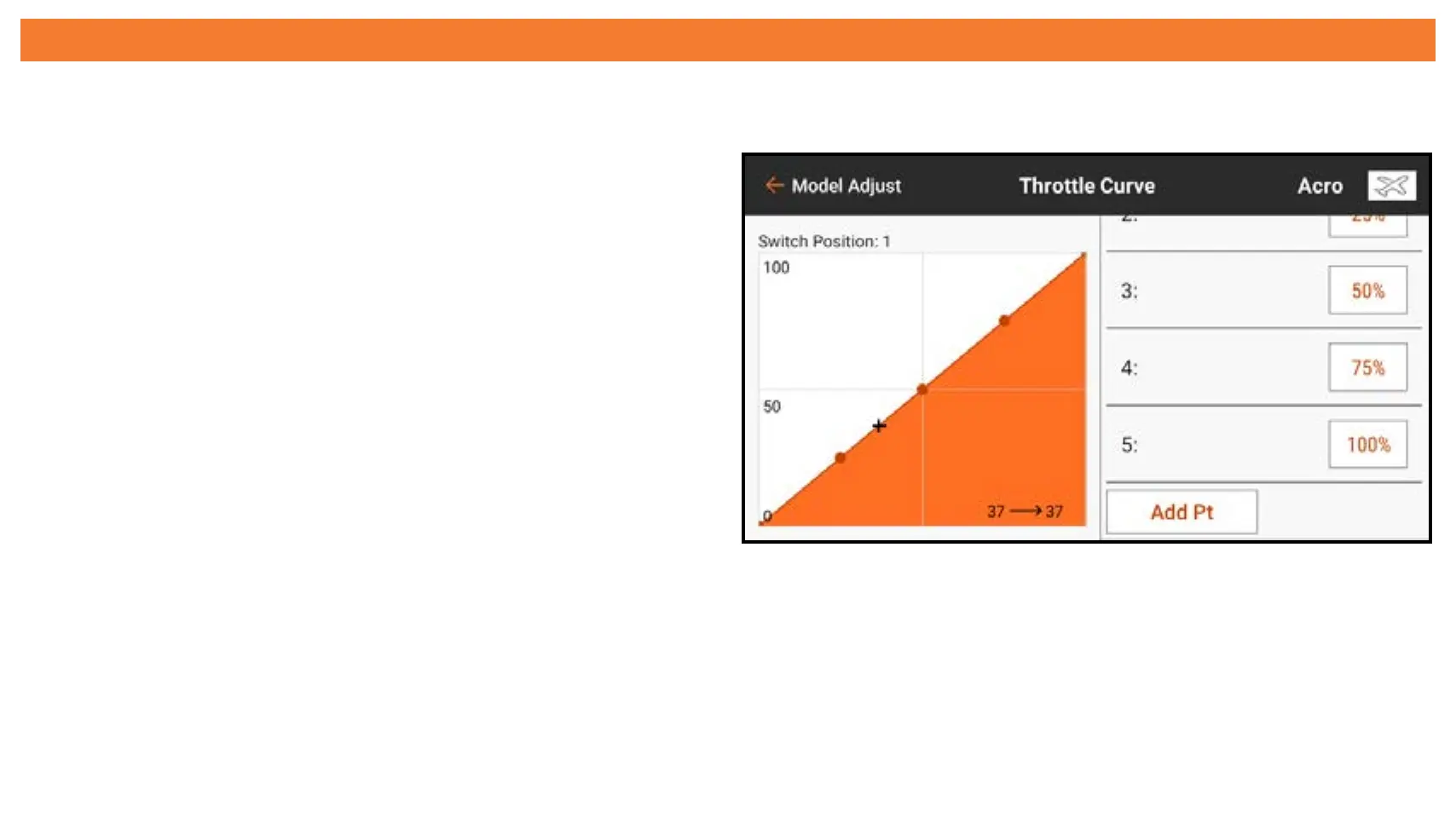 A maximum of 7 points, at a minimum of 10% apart, are available on the throttle curve.