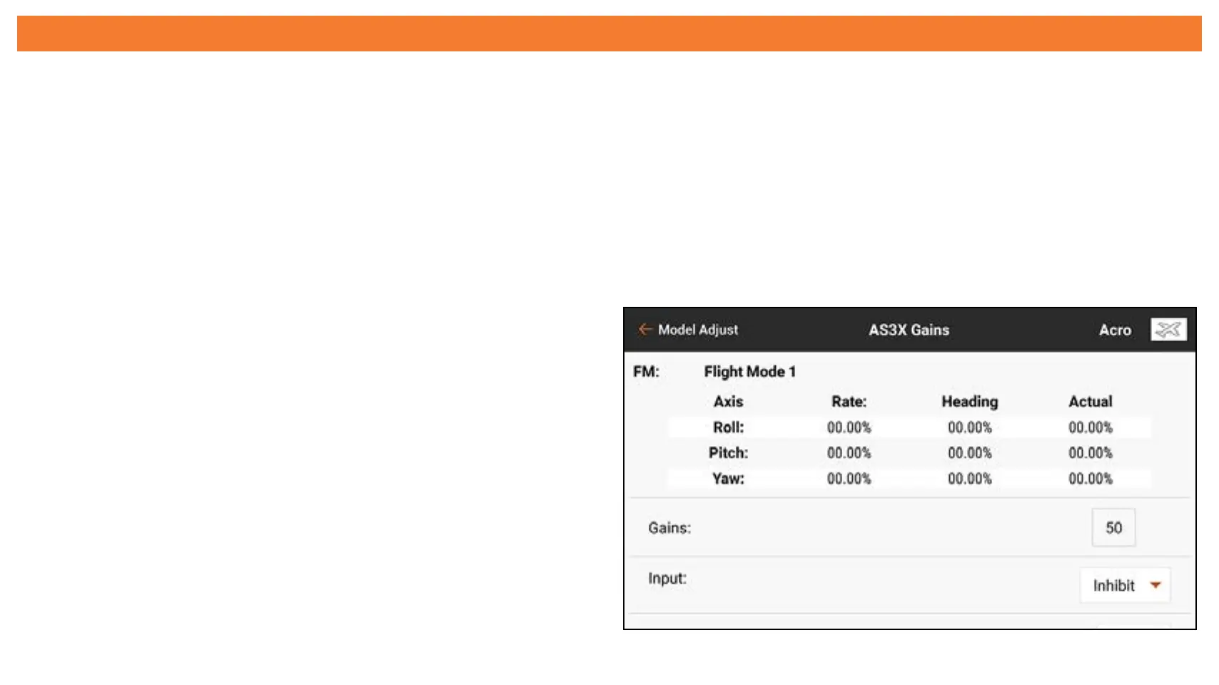 When using a compatible AS3X receiver, the AS3X menu allows: