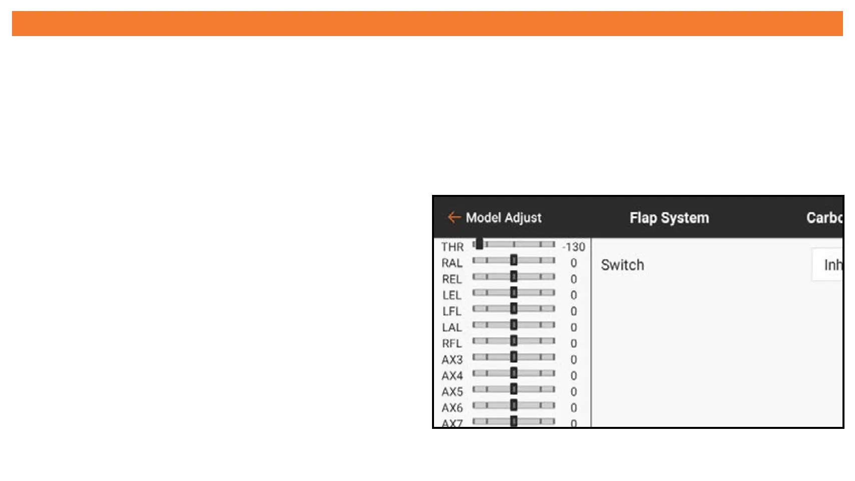flaps in Aircraft Type in the Model Setup menu. Settings include: switch input, flap
