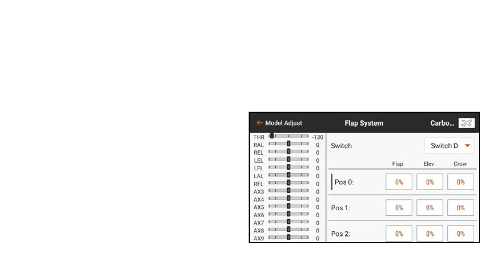 1. From Model Adjust, touch Flap System.