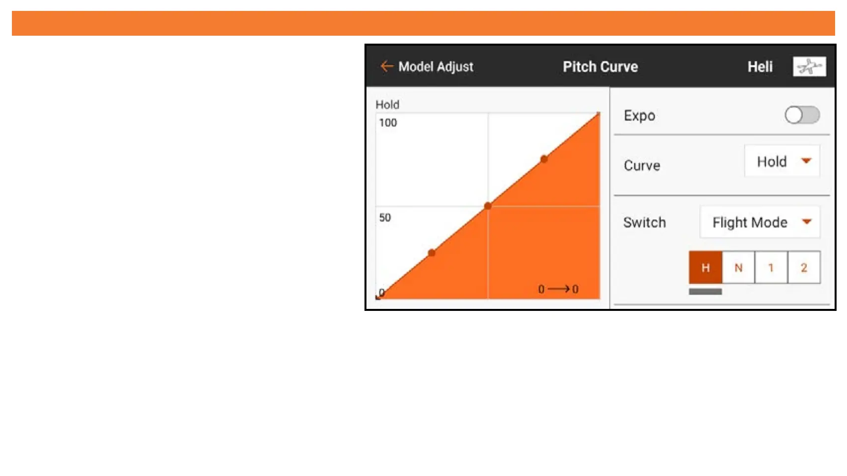 throttle stick, and the vertical axis represents the pitch command. Each flight mode