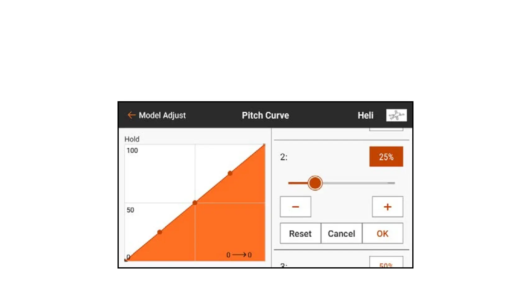 1. From Model Adjust, touch Pitch Curve to open the scrollable menu.