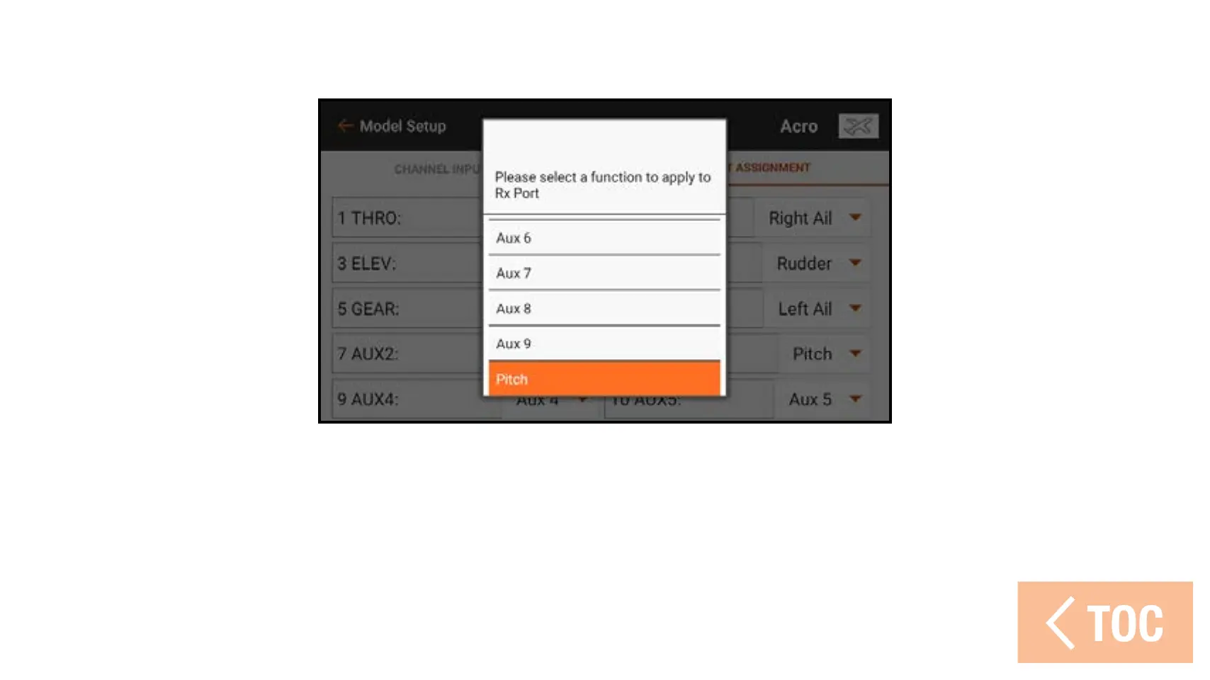 8. From Model Adjust, touch Pitch Curve. Assign a switch and program the pitch