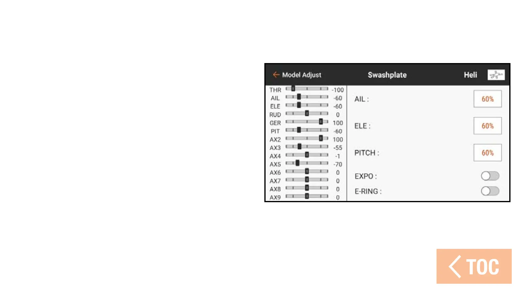 7. Change the values in the Swashplate