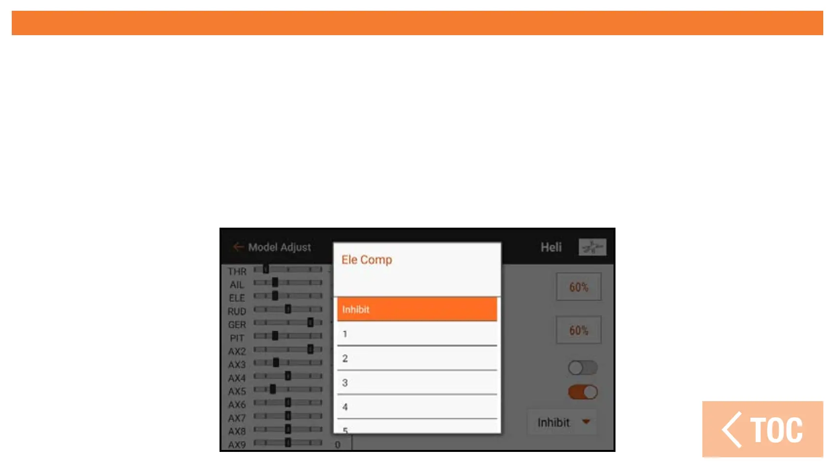 delay of the aileron and pitch channels with elevator input. The menu gives a scale