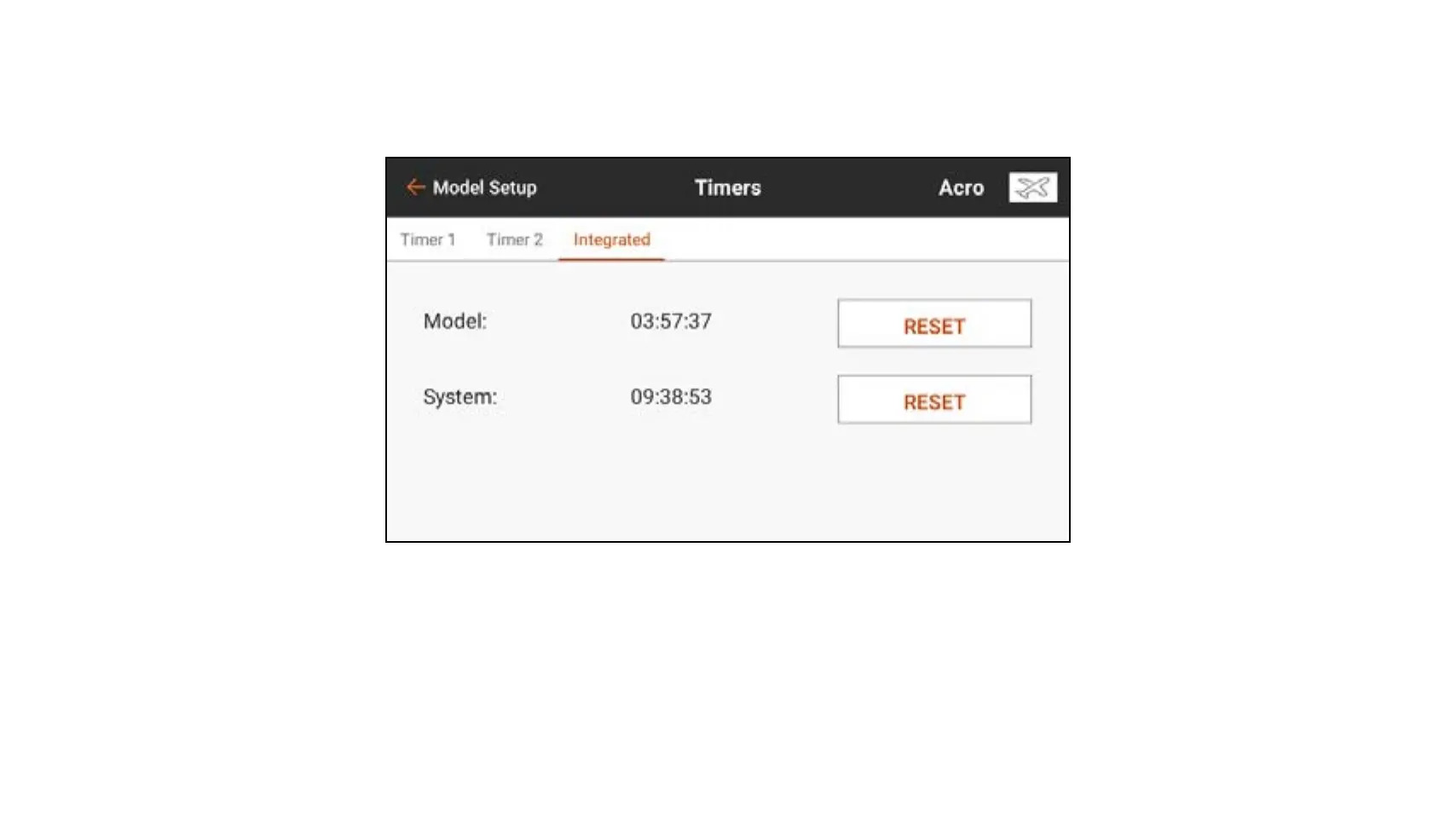 The integrated timers record the time the model has clocked as well as the total