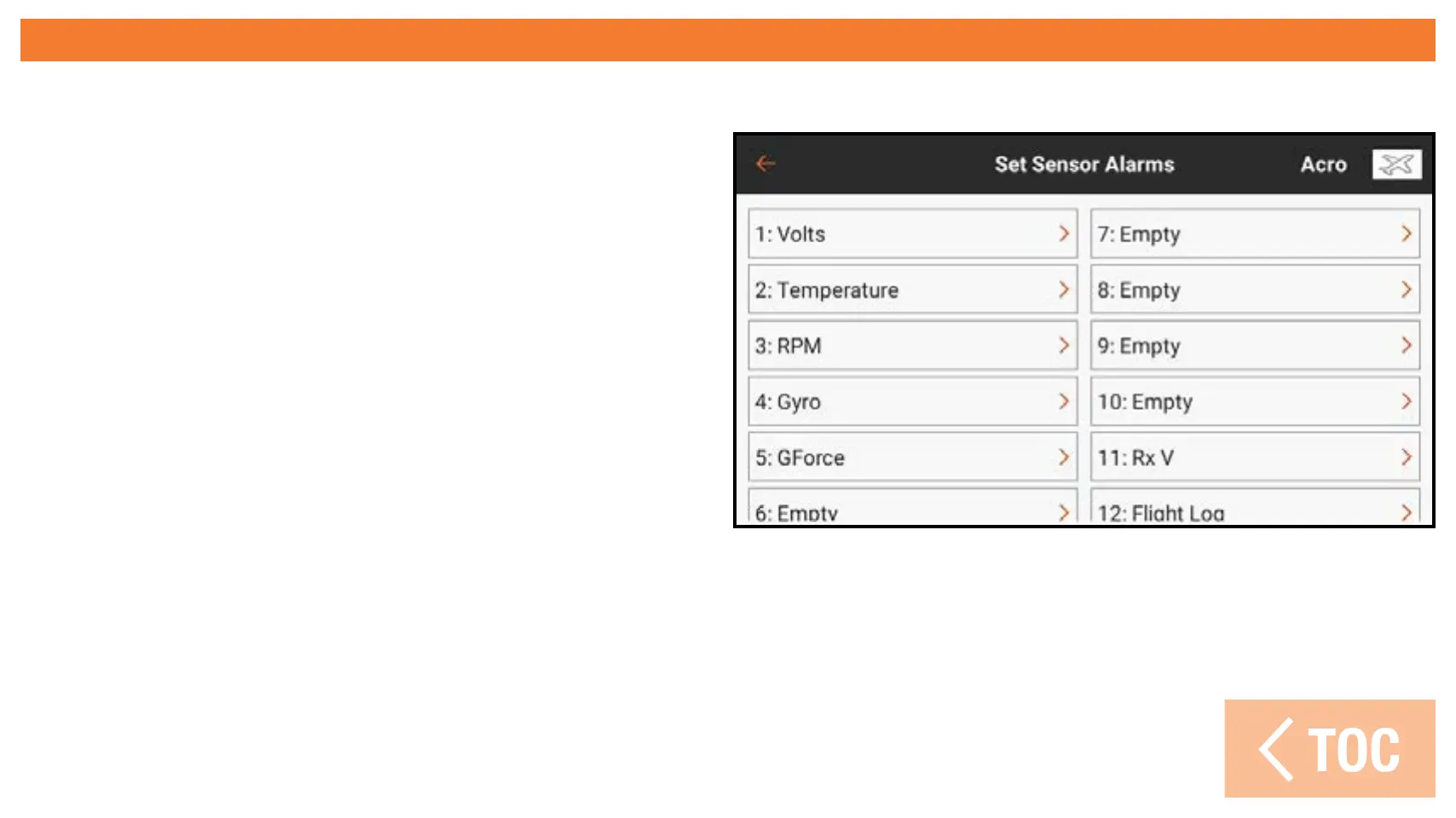 Touch Set Sensor Alarms to edit/create alarms for the various telemetry sensors.