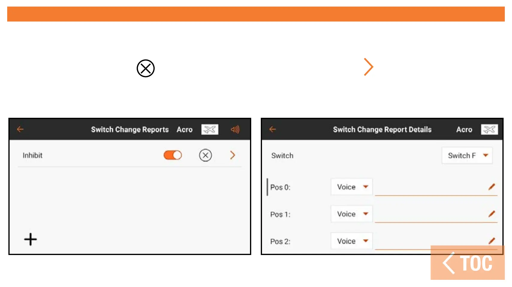 The Switch Change Reports menu creates an audio report when a switch is moved.