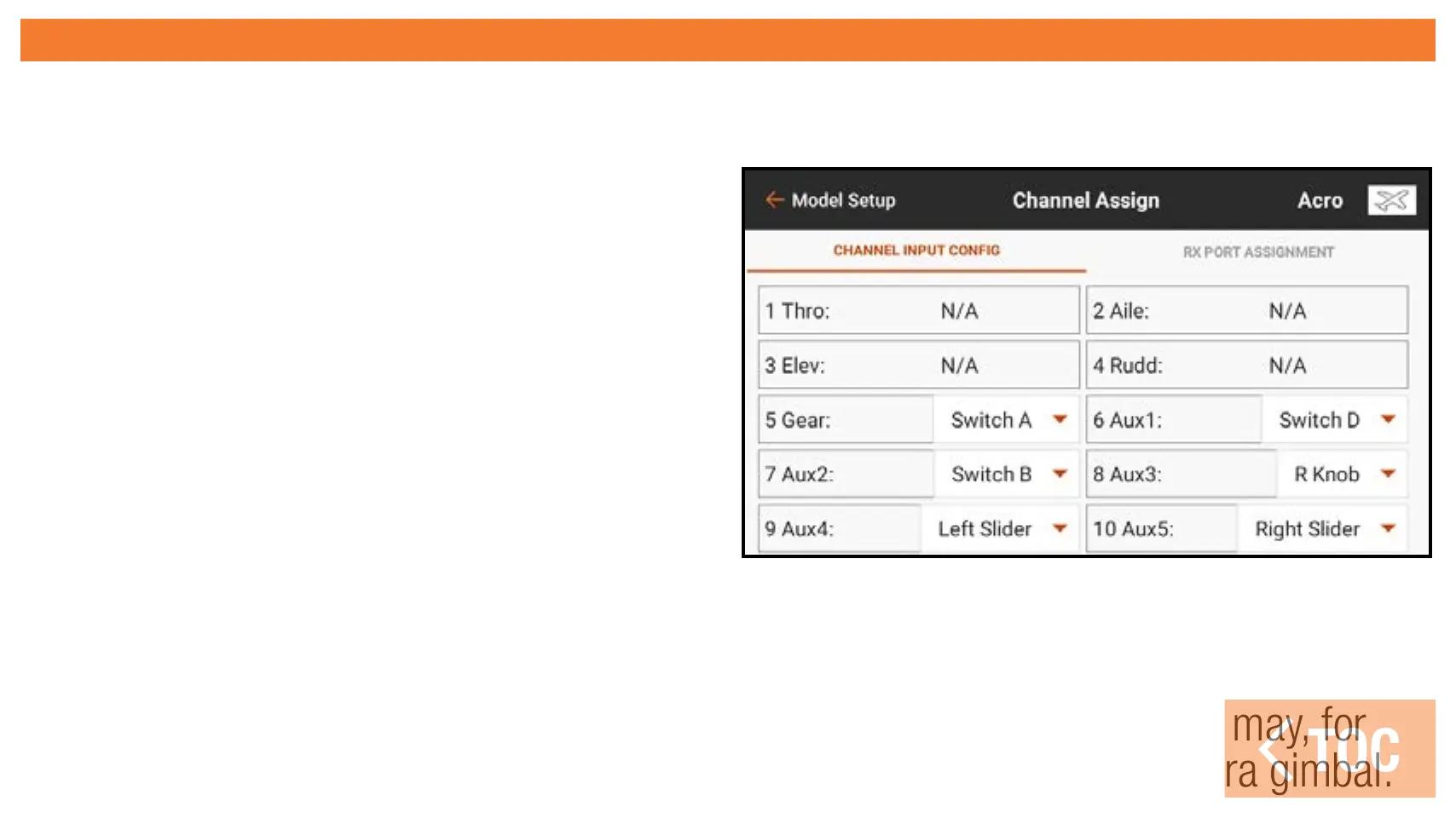 In the Channel Input Configuration menu, all but the primary flight controls are available