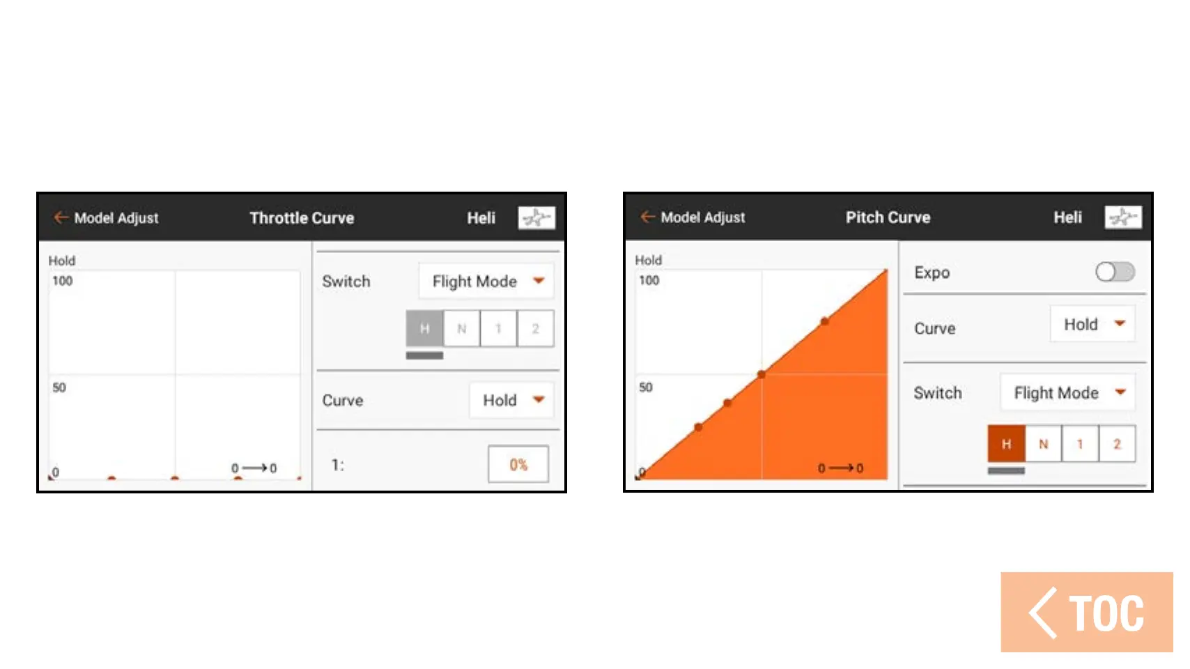 Hold mode is enabled in the Flight Mode Setup, the curves can be adjusted in the