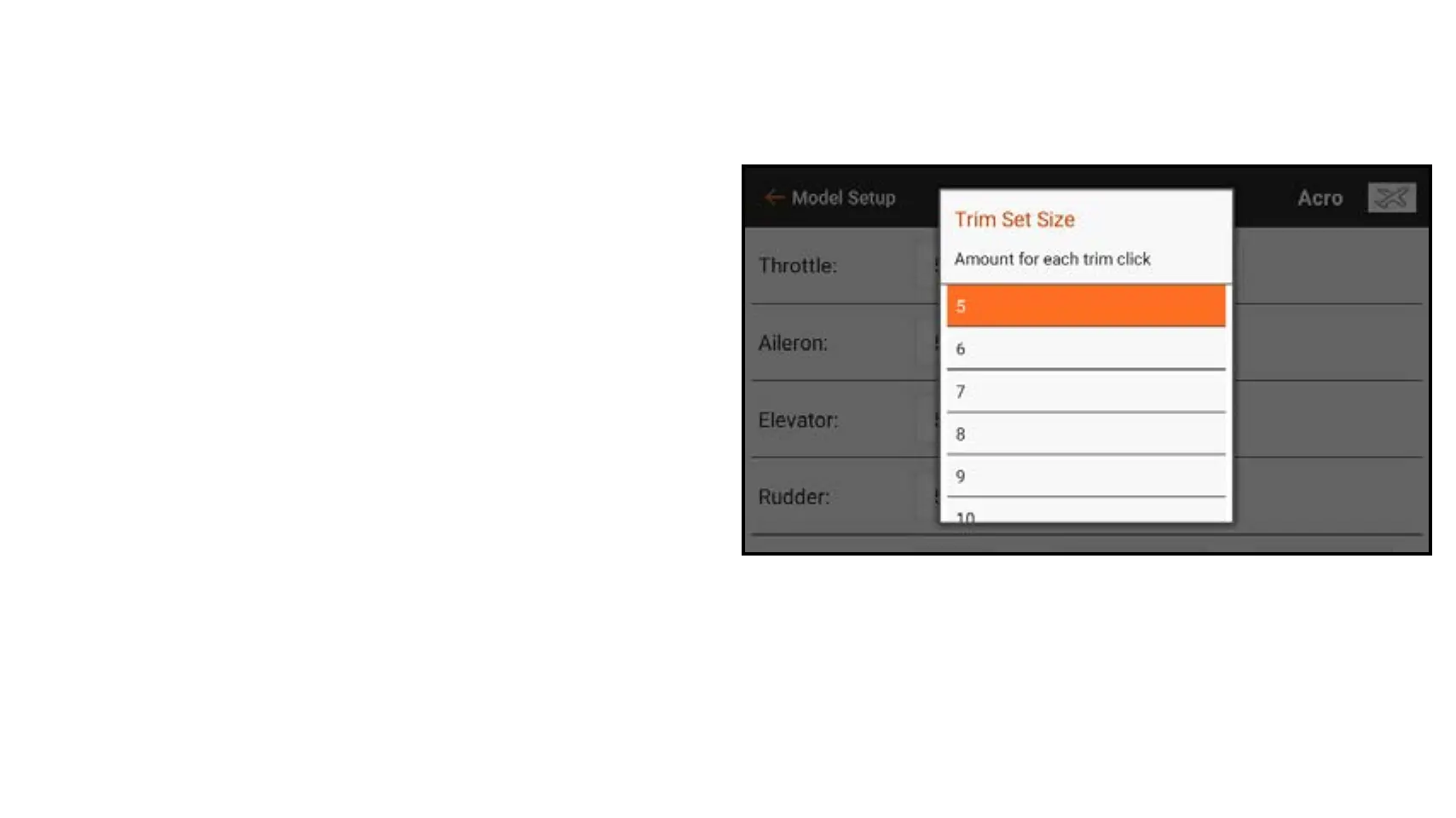 Trim Step: Adjusting the trim step value determines how many “clicks” of trim you