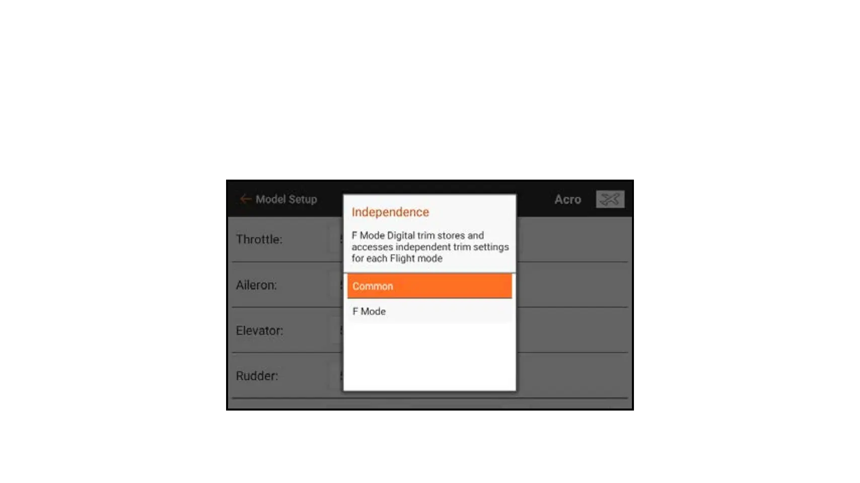 F-Mode trim type enables you to save trim values for each individual flight mode.