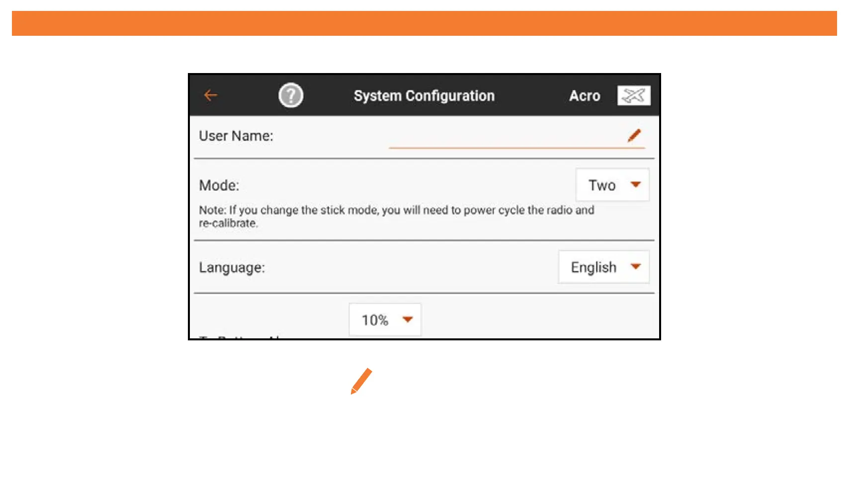 User Name: Touch the pen icon ( ) to enter the user name in the text field