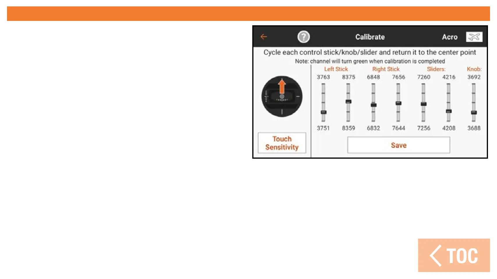 control is confirmed. The control must be centered for the indicator to stay green.