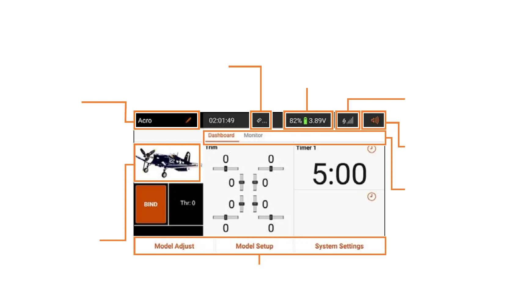 Spektrum Airware navigation buttons