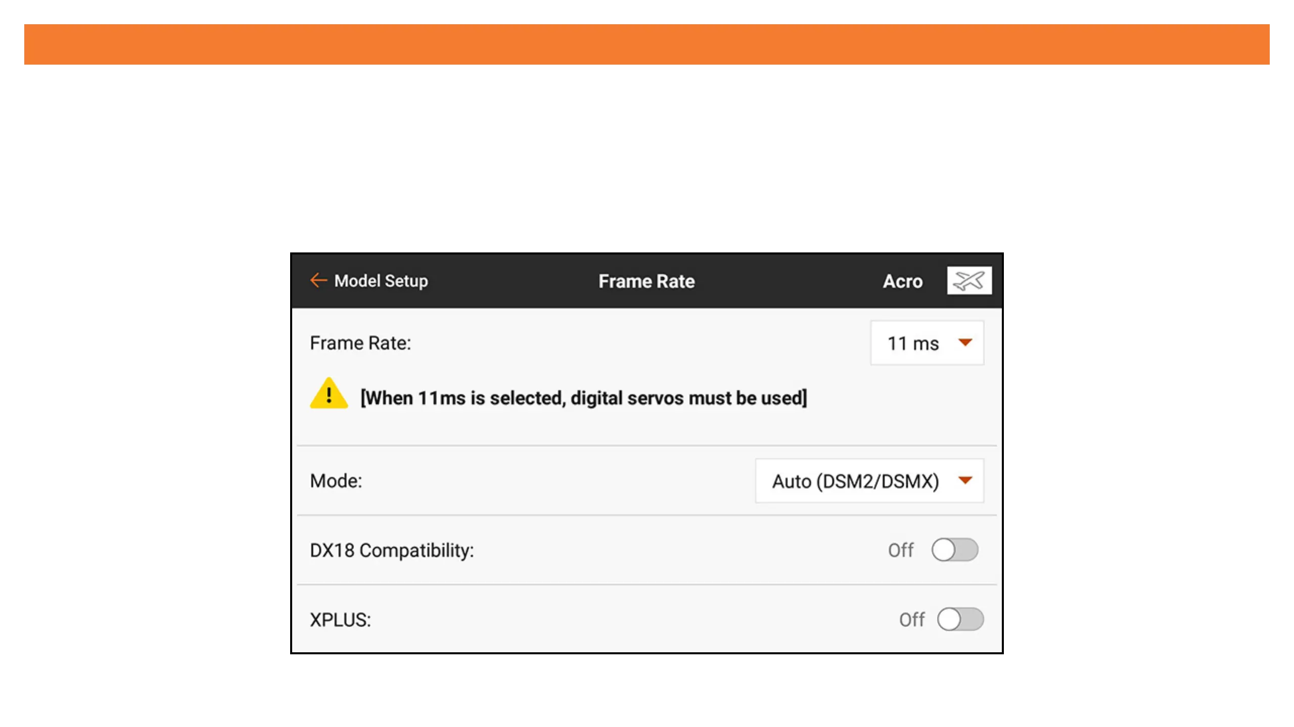 11ms settings require digital servos or direct communication with the Spektrum serial signal