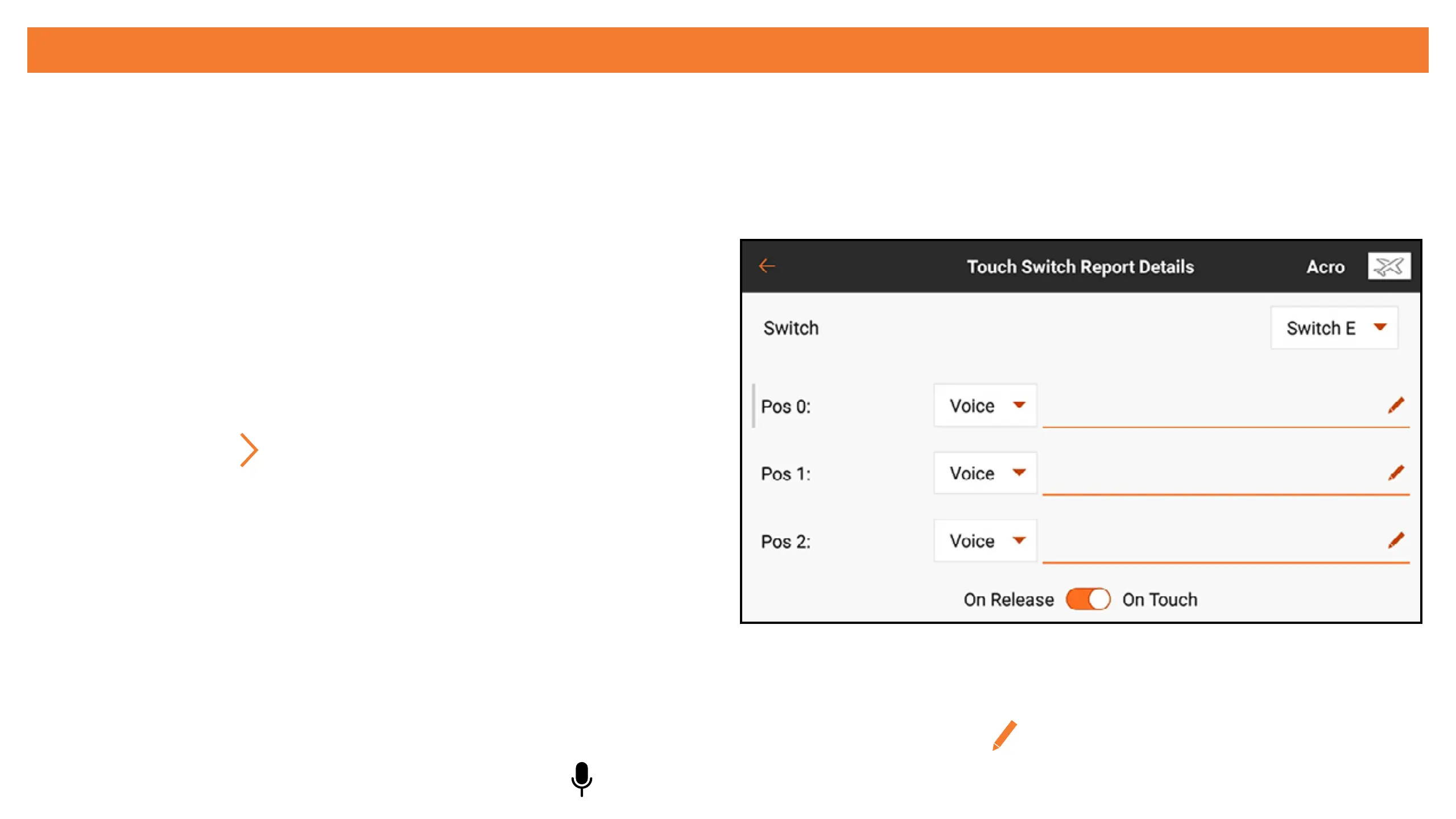 The available switch positions are displayed on the screen along with a text eld for each position.
