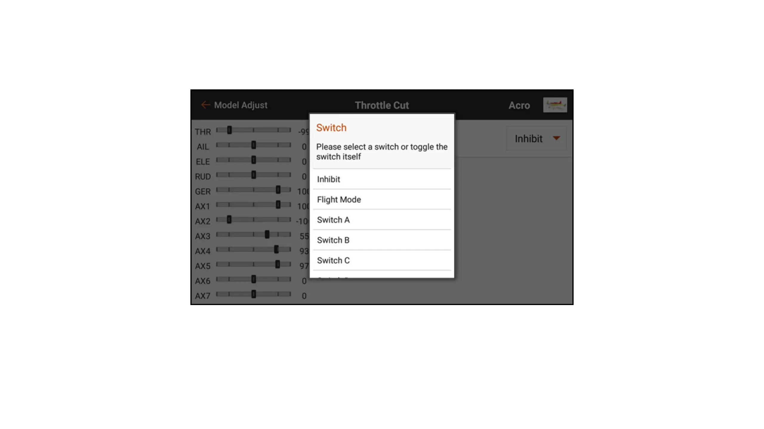 2. Select the desired switch from the popup menu. A quicker alternative to selecting the switch