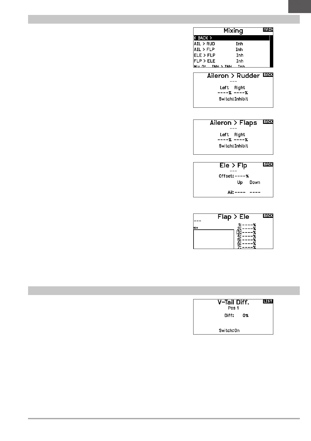 For each of these mixes, you can program each flight mode with