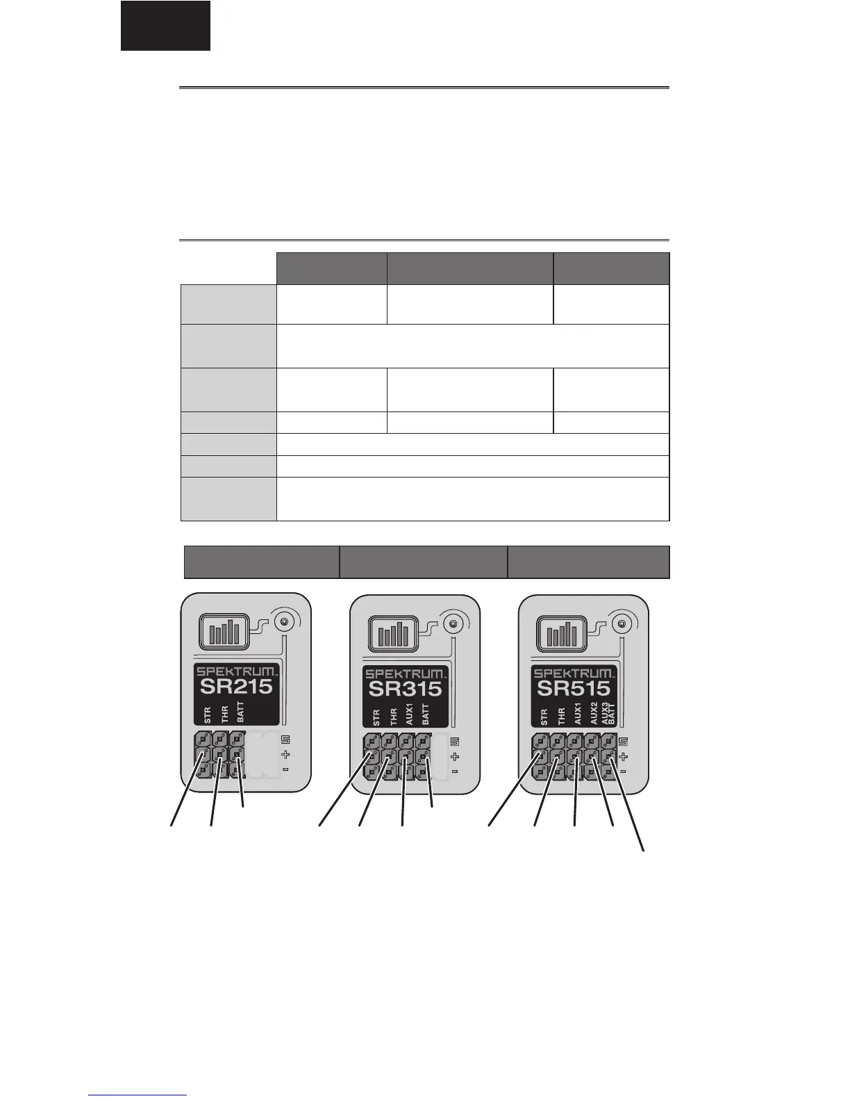 *IMPORTANTE: AUX 3 su SR515 condivide la porta servo con la batteria. Un