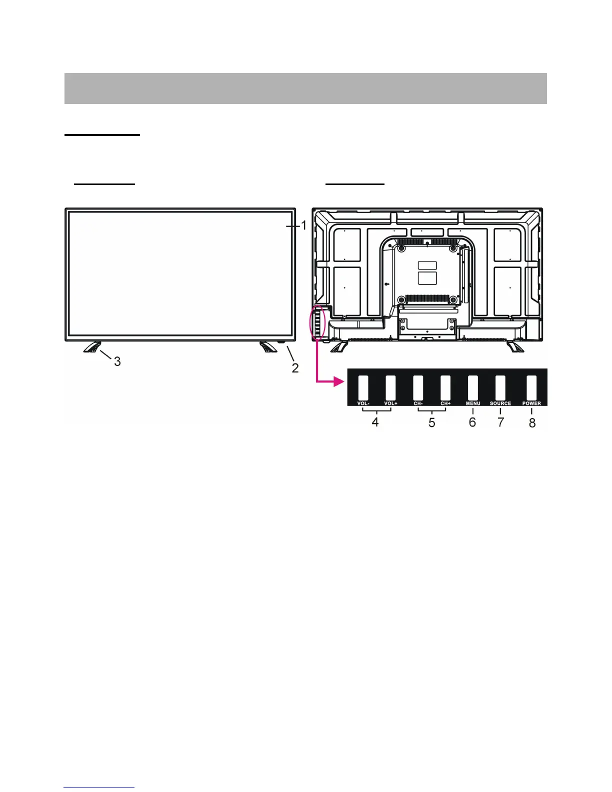 8. POWER button- To turn the TV ON/OFF.