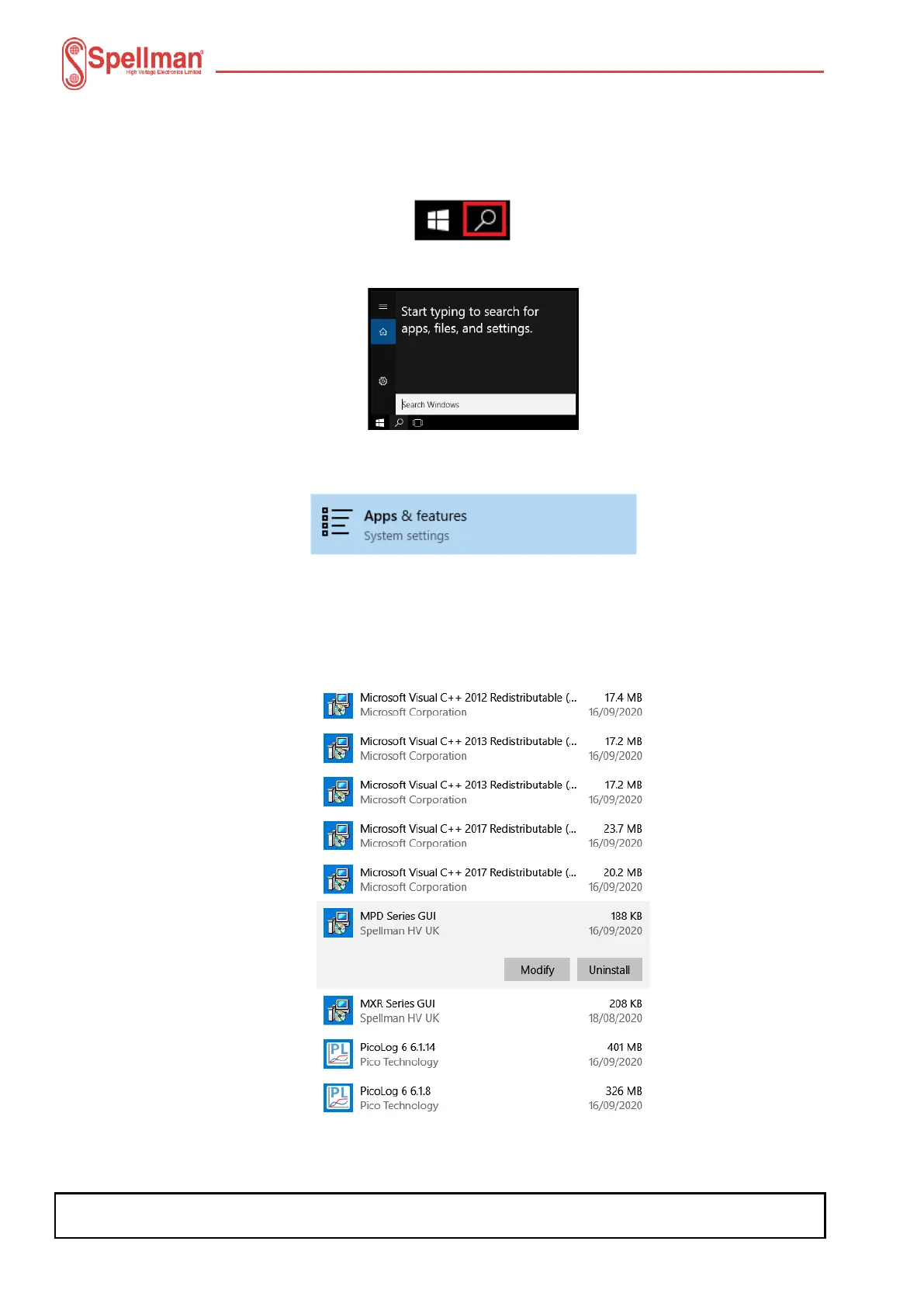 To uninstall the application using the ‘Apps & Features’ tool follow the procedure below.