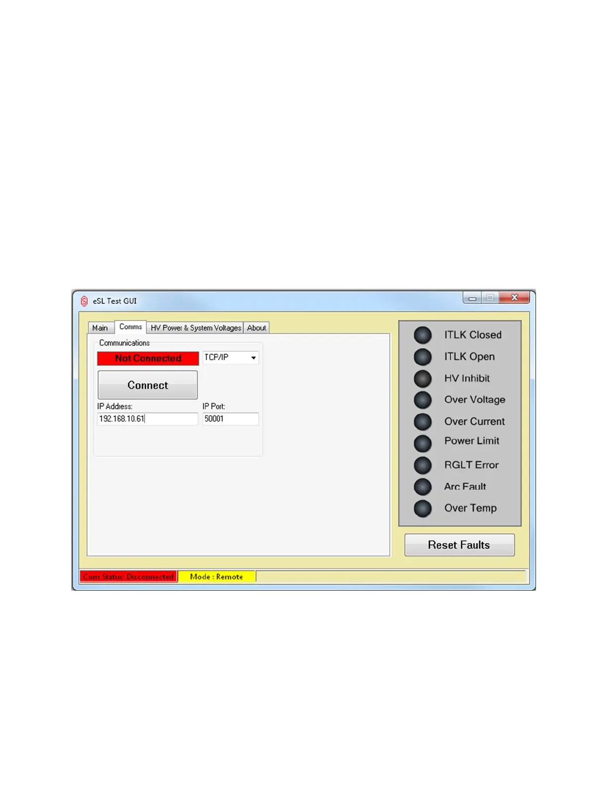 IftheGUIcommunicateswiththeeSLunitcorrectly,ComStatusonbottomleftshould
